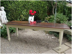 All of our reclaimed tables that are Shabby Chic are finished (legs and decorative plinths) in high quality Farrow & Ball paint. The depth and beauty of this paint, we have found, is unmatched by other paints. The colours and finishes are traditionally applied by hand.  We also hand wax all of our tables with good quality Fiddes wax. Which you can also purchase from ourselves to use in the future. Shop