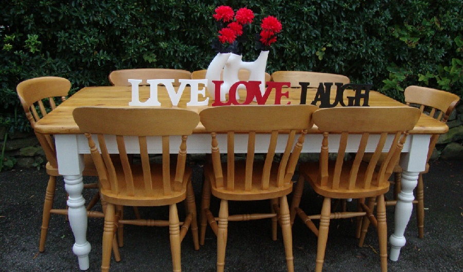 Our farmhouse tables are all reclaimed by craftsmen who live and breathe quality workmanship, and you can’t put a price on that. We combine this with a passion to get every reclaimed table we restore just right for the customer whatever the finish, Shabby Chic painted or waxed. There is nothing quite as satisfying as ordering a table at a fraction of the cost of a new one to suit you and your needs.